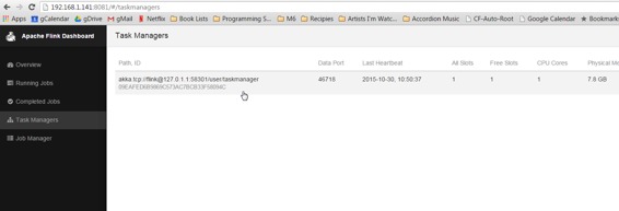 在浏览器中,浏览http:// yourip:8082查看Flink Web-UI。点击左侧导航栏中的“任务管理器”。确保至少有一个任务管理器存在。