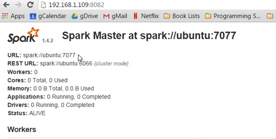 打开浏览器并导航到http://yourip:8082,以确保Spark主机正在运行。