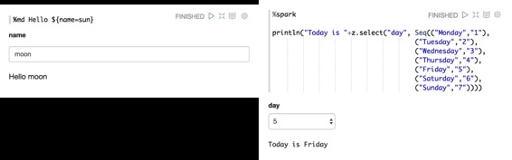 Apache Zeppelin可以在笔记本中动态创建一些输入表单。