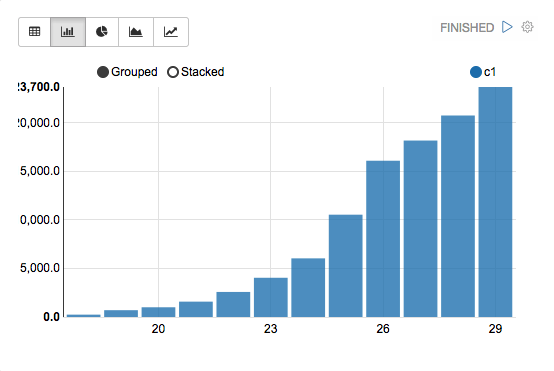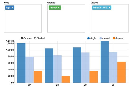 Apache Zeppelin聚合值,并通过简单的拖放将其显示在透视图中。您可以轻松创建具有多个汇总值的图表,包括总和,数量,平均值,最小值,最大值。