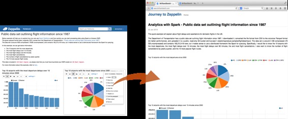 Apache Zeppelin提供了仅显示结果的URL,该页面不包括笔记本内的任何菜单和按钮。您可以轻松地将其作为iframe嵌入到您的网站内。如果您想了解更多有关此功能的信息,请访问此页面