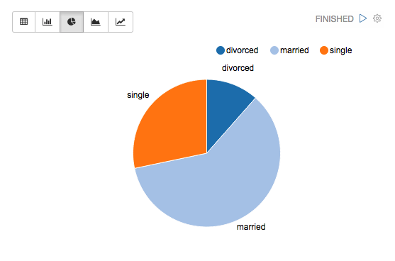 Apache Zeppelin中已经包含了一些基本图表。可视化不限于Spark SQL查询,任何语言后端的任何输出都可以被识别和可视化。