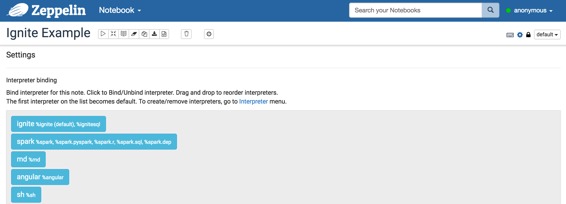 配置Ignite解释器后,创建自己的笔记本。然后,您可以绑定如下图像的解释器。