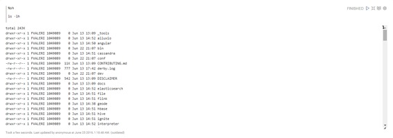 注意:目前,每个命令以Zeppelin服务器的运行方式运行。