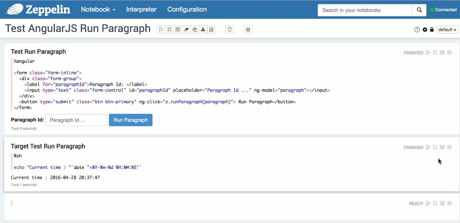 Executing Paragraph(执行段落) z.runParagraph(paragraphId) z.run(paragraphId)
