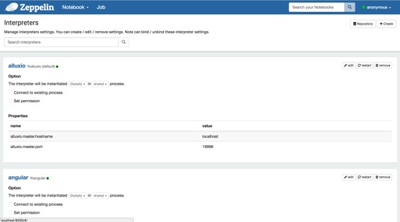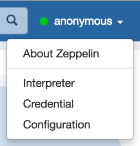 此菜单可让您访问设置并显示有关Zeppelin的信息。anonymous如果使用默认的shiro 配置,用户名设置为。如果要设置身份验证,请参阅Shiro身份验证。