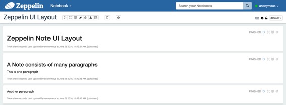 每个Zeppelin笔记由1 .. N段组成。该笔记可以看作是一个段落容器。